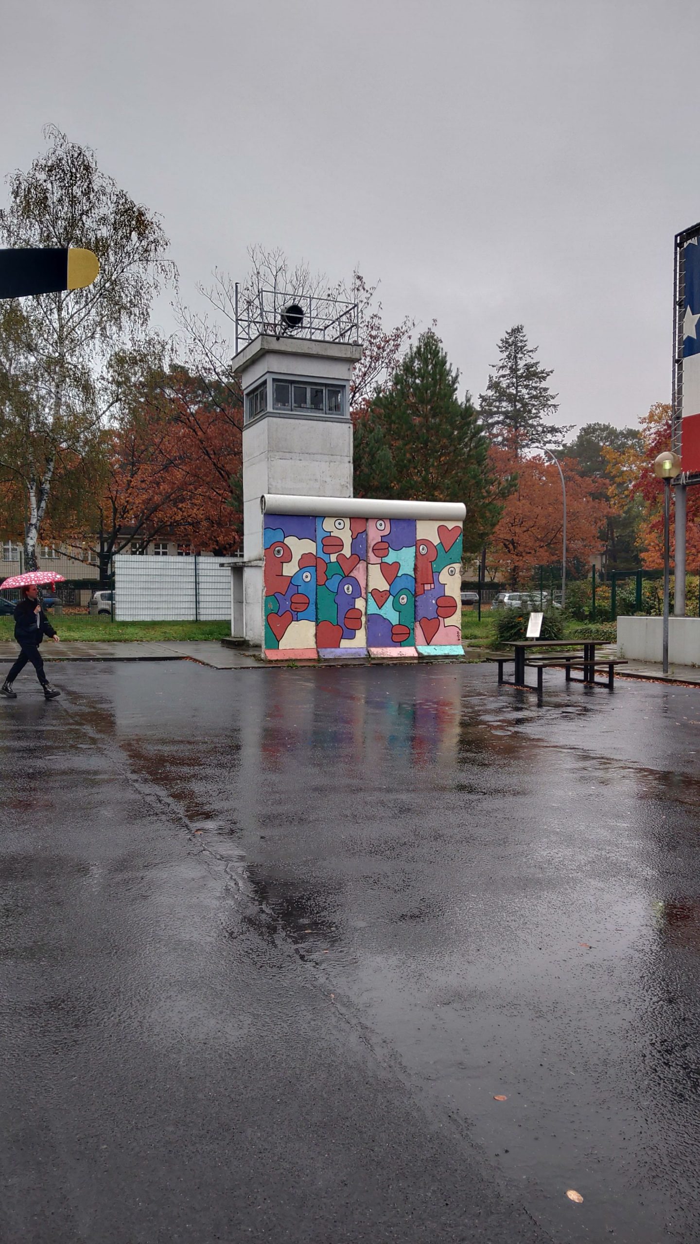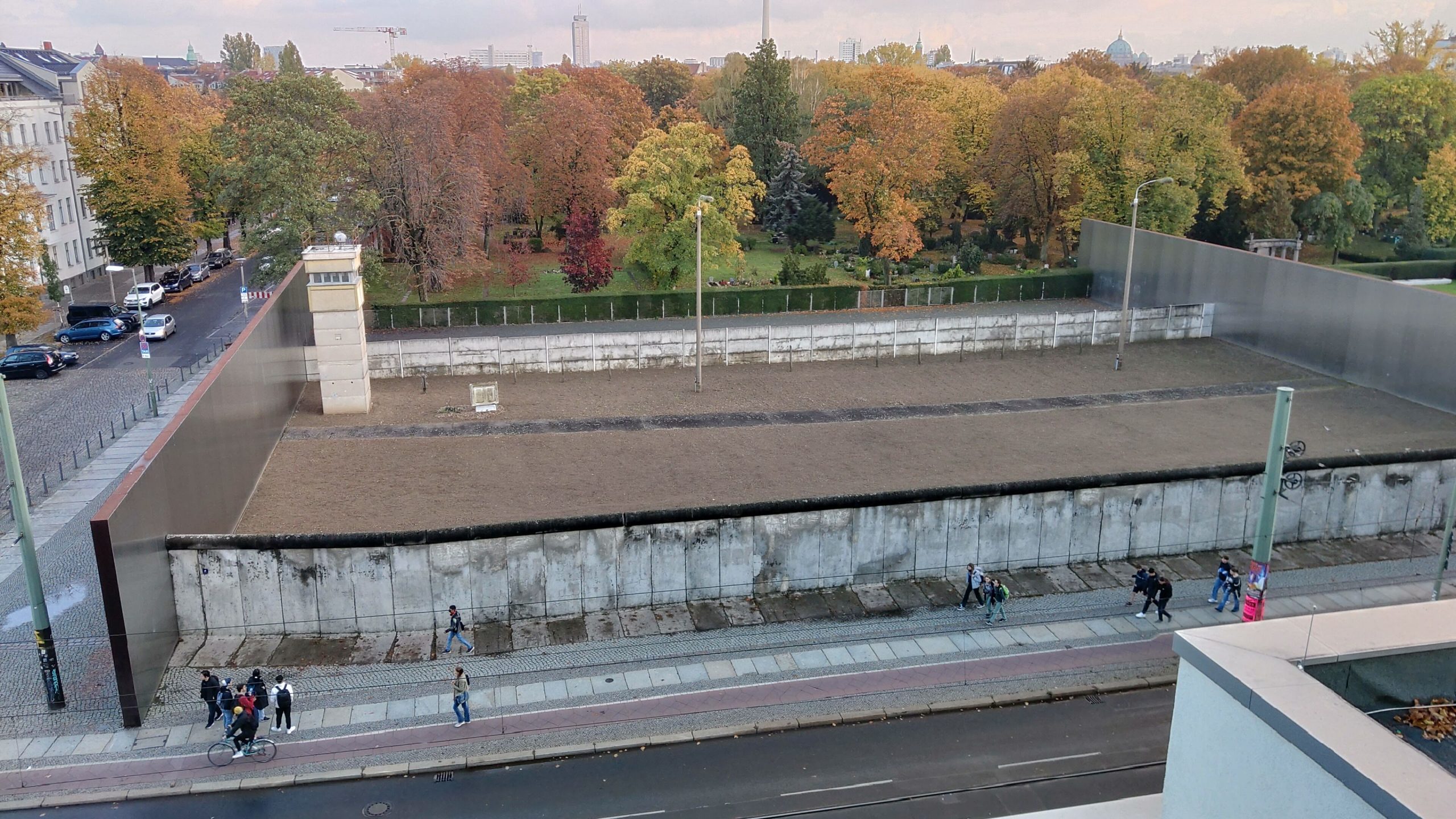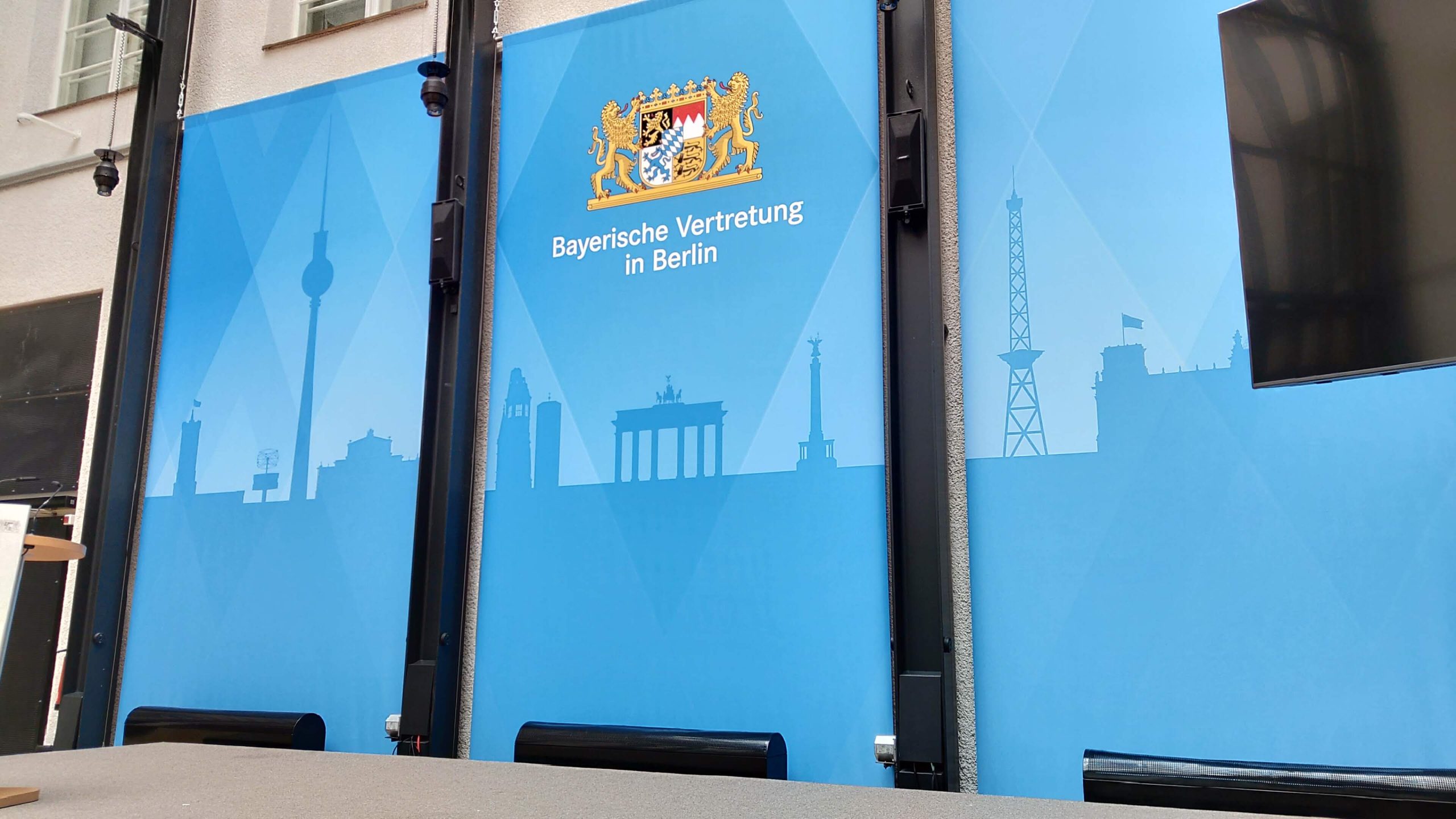 Am Dienstag ging es sogar noch früher als am Tag zuvor los, um 9:00 Uhr fuhr der Bus vom Hotel aus los. Es war ein sehr regnerischer Tag, weshalb wir alle froh waren, dass fast der gesamte Tagesplan aus Indoor-Aktivitäten bestand. Bis ungefähr 11:00 Uhr fuhren wir durch die Stadt und bekamen allerlei interessante Informationen zu Gebäuden, der Geschichte von Berlin, Personen und vielem mehr mitgeteilt. Um halb zwölf machten wir dann einen kurzen Stopp am Alliierten Museum, bevor die Stadtrundfahrt weiterging und wir circa 12:15 bei der Ausstellung „ERLEBNIS EUROPA“ im Europäischen Haus Berlin ankamen. Dort gab es allerlei nützliches Wissen über die Arbeit der Europäischen Union und des EU-Parlaments. Bis 13:30 hatten wir dann individuelle Freizeit, in der wir Souvenirs einkaufen und einen Kaffee trinken konnten. Danach trafen wir uns mit Leon in einem Steakhouse direkt neben dem ZDF-Fernsehstudio zum Mittagessen. Nach ein paar Gesprächen mussten sowohl er als auch wir schon wieder weiter, denn für uns stand ein Informationsgespräch in der Bayerischen Landesvertretung an. Uns wurde die Geschichte des Hauses und der ständigen Vertretung selbst, sowie die Arbeit und Aufgaben der bayerischen Beamten in Berlin erläutert. Nach einem kleinen Freibier im Keller und waren wir auch schon wieder unterwegs zur Gedenkstätte Berliner Mauer. Dort angekommen hatten wir eine Stunde Zeit, um die Ausstellung anzuschauen und die Überreste des „Todesstreifens“ zu besichtigen. Daraufhin gingen wir alle noch einmal gemeinsam in einem Restaurant in der Nähe des Hotels zum Abschlussessen.